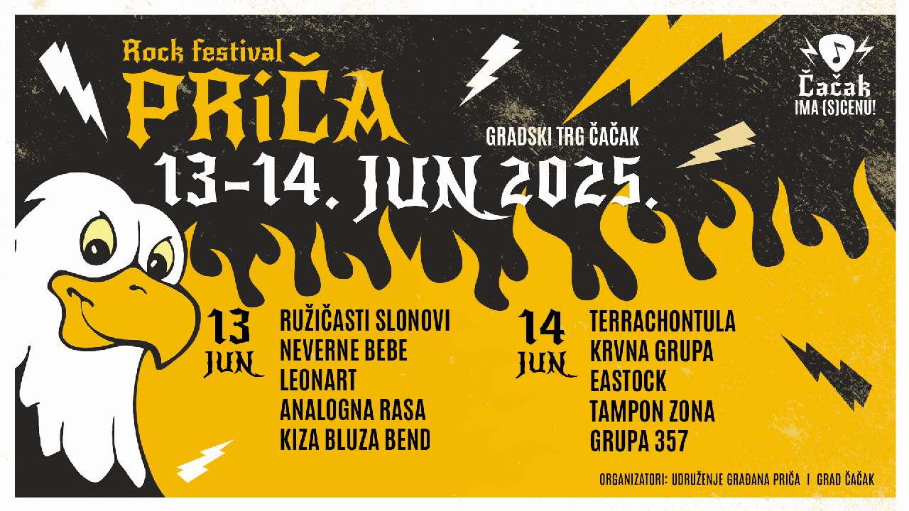 Ove godine u Čačku će se održati 10. po redu Festival PRIČA i povodom tog jubilarnog izdanja organizatori su doneli odluku da svi sadržaji budu besplatni za publiku, tako da će se koncertni deo programa održati 13. i 14. juna na Gradskom trgu sa početkom u 20 časova.